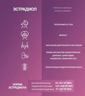 Если эстрадиол ниже нормы – это также говорит о нарушении фолликулярной фазы, ведь процесс выработки лютеинизирующего гормона (ЛГ) начинается под действием эстрогенов. За сутки до овуляторной фазы содержание эстрадиола повышается почти в 3 раза и составляет от 127 до 476 пг/мл. Длится пик количества эстрогена недолго и уже на следующий после овуляции день, начинается резкое его снижение.