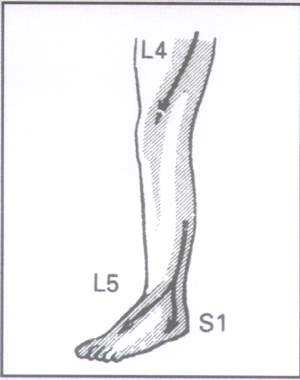 Боль при ишиалгии иррадиирует в ногу и соответствует зоне иннервации сдавленного корешка или нерва. Иногда боль локализуется только в ноге. Чаще всего страдают корешки L5 и S1 (рис. 1). Ишиалгия часто сопровождается крайне выраженным болевым синдромом, но в большинстве случаев проходит при консервативной терапии. Иногда показано оперативное лечение.