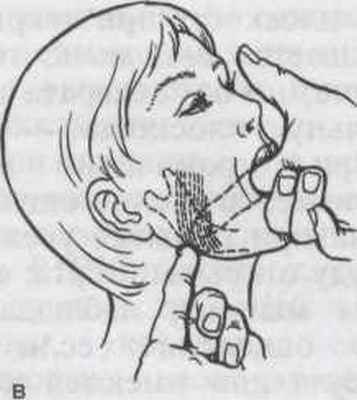 Мышцы дна полости рта исследуют между указательным (внутри-орально) и большим (экстраораль-но) пальцами. Дно полости рта мо-