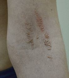 веррукозные высыпания на коже шеи слева, сгибательной поверхности левой конечности (фото из архива М.А. Уфимцевой)