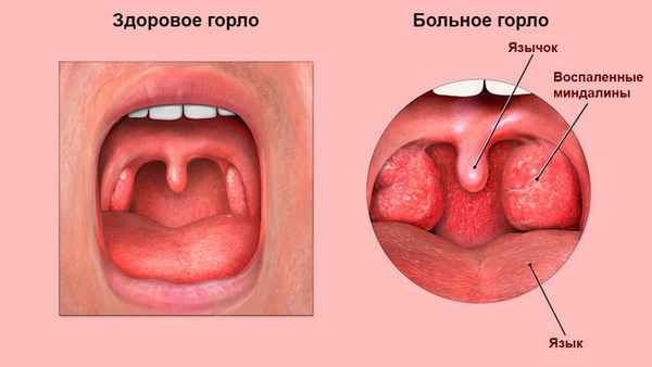 Рисунок 1. Здоровые и воспаленные миндалины. Источник: CDC