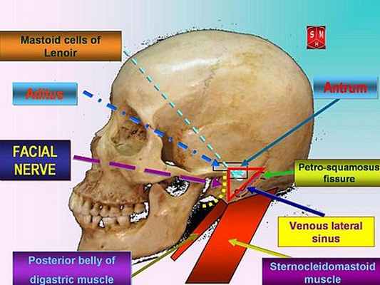 При остром среднем гнойном отите Острый средний отит Острый средний отит – воспаление среднего уха вирусного или бактериального генеза, обычно сопровождающее инфекции верхних дыхательных путей. Клинически проявляется болью в ушах и нарушением. Прочитайте дополнительные сведения существует риск вовлечения в воспалительный процесс пещеры и воздухоносных ячеек сосцевидного отростка височной кости, что приводит к накоплению жидкости. В редких случаях, бактериальная инфекция развивается в собранной жидкости, а возбудителем обычно выступает тот же организм, что и при среднем отите; чаще всего это пневмококк. Инфекция сосцевидного отростка может вызвать остеомиелит перегородок, что приводит к слиянию воздухоносных клеток.