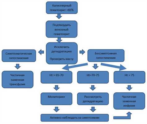 NB! Остальные диагностические мероприятия нацелены на выявление причины полицитемии у новорожденных. При подозрении на каждую конкретную нозологию используются свои методы диагностики.