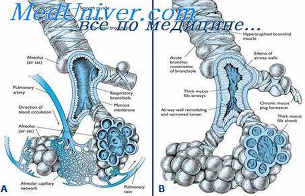 Симптомы аналогичны таковым при обострении бронхиальной астме Клинические проявления Бронхиальная астма – заболевание, характеризующееся диффузным воспалением дыхательных путей с разнообразными пусковыми механизмами, которое приводит к частично или полностью обратимому бронхоспазму. Прочитайте дополнительные сведения или легочного муковисцидоза Нарушения дыхания Муковисцидоз является наследственным заболеванием желез внешней секреции, проявляется в первую очередь патологией со стороны желудочно-кишечного тракта и дыхательной системы. Повышенная вязкость. Прочитайте дополнительные сведенияДиагностика