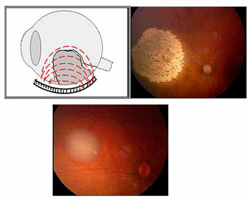 Брахитерапия – локальное облучение опухоли путем подшивания к глазу радиоактивной пластинки – офтальмоаппликатора. Преимущество брахитерапии: возможность подведения максимальных доз излучения непосредственно на опухолевый очаг при отсутствии воздействия на окружающие ткани и организм в целом.