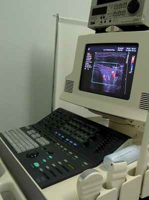 Цветная допплер-ЭхоКГ в комбинации со спектральной и двухмерной допплер-ЭхоКГ позволяет более точно оценить размеры, форму сердца и его структур, также как объемы и направления потоков в области клапанов и выносящих трактов. Цвет используется для разграничения потоков крови; по соглашению красный поток, идущий к датчику, синий – в обратном направлении.