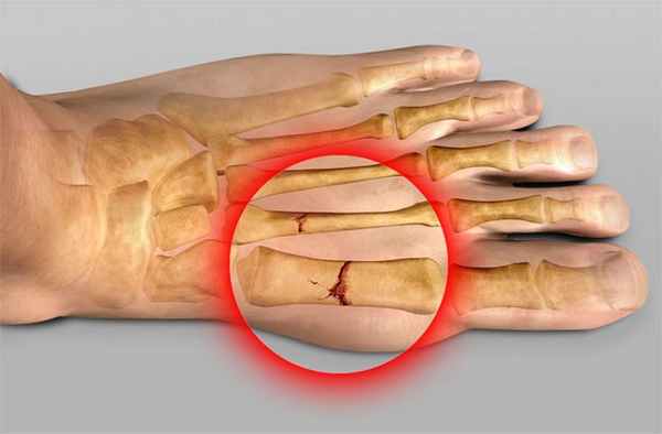 Эти переломы могут возникать в результате подворачивания стопы внутрь или травмы с размозжением тканей (при переломе основания), повторного стрессового воздействия или одиночной травмы (при переломе тела кости).