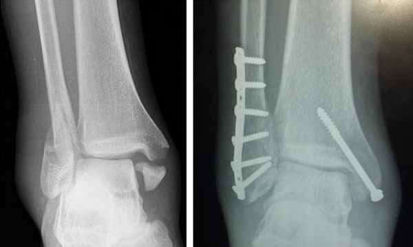 Во всех остальных случаях при переломе лодыжки госпитализация пациента обязательна. Для исключения развития посттравматического артроза в голеностопном суставе, который находится под большими нагрузками, необходимо правильное восстановление точного расстояния между больше и малоберцовой костями и длиной малоберцовой кости.