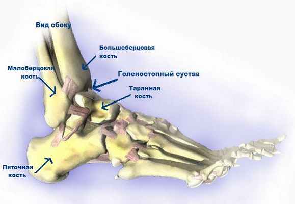 Кости стопы (таранной кости), расположенной между костями голени и пяточной костью
