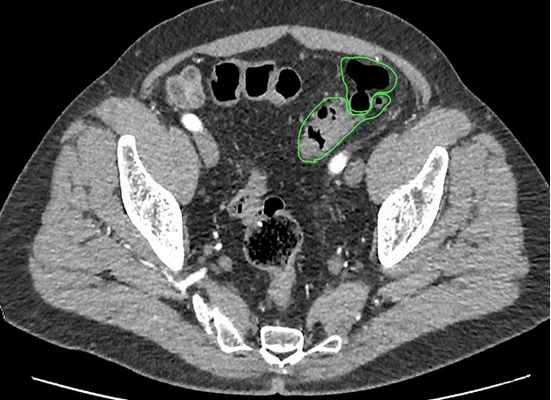 Для уточнения данных, полученных при ультразвуковом исследовании, при возникновении сомнений и для уточнения диагноза выполняется спиральная компьютерная томография. Виртуальная компьютерная томография позволяет воссоздать трехмерное изображение толстой кишки, включая пораженные участки. С помощью этой методики можно точно определить границы инфильтрата или абсцесса, другие органы, вовлеченные в воспалительный процесс.