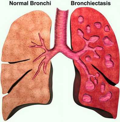 Бронхоэктазии — необратимые морфологические изменения (расширение, деформация) и функциональная неполноценность бронхов, приводящие к хроническому нагноительному заболеванию легких. Весь комплекс легочных и внелегочных изменений при наличии бронхоэктазов называют бронхоэктатической болезнью.