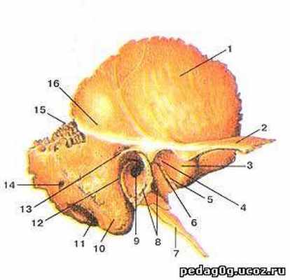 Сам височный элемент являет собой нецельную кость: он представлен рядом частей, которые его образуют.