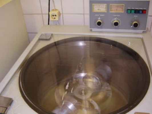 Фото 1. Центрифугирование (разделение) крови на клетки и плазму.