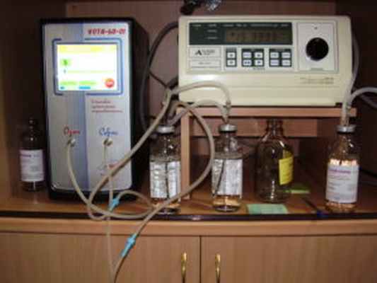 Озонотерапия проводится на московском озонаторе с возможностью реального измерения концентрации озона в растворах (на фото слева).