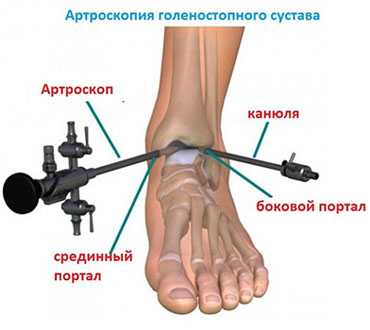 • Если располагать порты на уровне голеностопного сустава, суставная поверхность таранной кости будет видна хуже