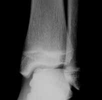 - Рентгенологически видимый вальгусный наклон таранной кости в вилке голеностопного сустава