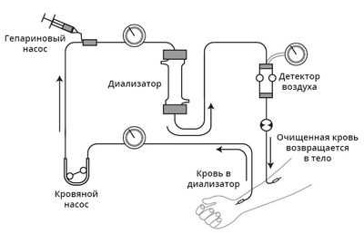 Метод предполагает обеспечение сосудистого доступа, для этого на предплечье пациента формируют фистулу, через которую будет подсоединяться аппарат. В нем устанавливается мембрана, с одной стороны которой течет диализный раствор, вытягивающий из крови молекулы удаляемых веществ. Соответственно, устройство состоит из двух основных частей: