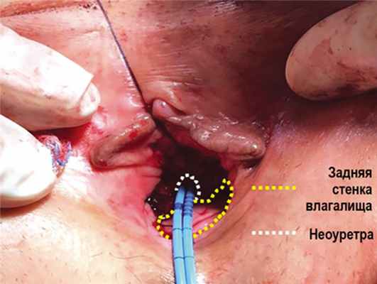 Рис. 6. Окончательный вид сформированной неоуретры и влагалища со стороны промежности (интраоперационная фотография).