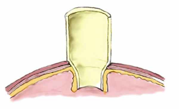 Мочеточниковый стент и надлобковый катетер Малеко выводят наружу через дополнительное отверстие в передней стенке мочевого пузыря. Мочевой пузырь ушивают двухрядным швом: 1-й ряд (непрерывный шов кетгутовой нитью 4-0) накладывают на подслизистую основу, 2-й ряд (узловые швы хромированной кетгутовой нитью 3-0) — на мышечную оболочку. Мочеточниковый стент оставляют на 5 дней, а надлобковый катетер удаляют на следующий день.