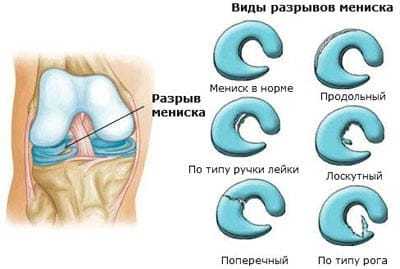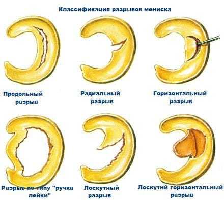 разрыва мениска виды