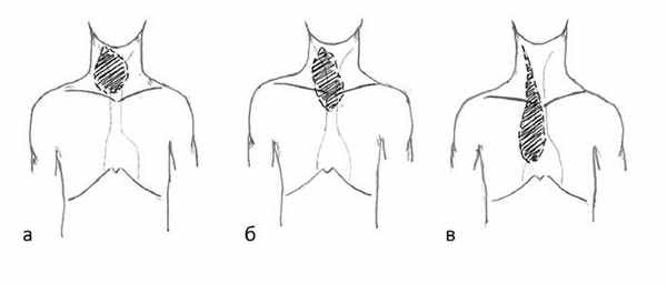 3-й тип - независимо от степени поражения глубоких клетчаточных пространств шеи гнойные очаги определяются в нижних отделах средостения.
