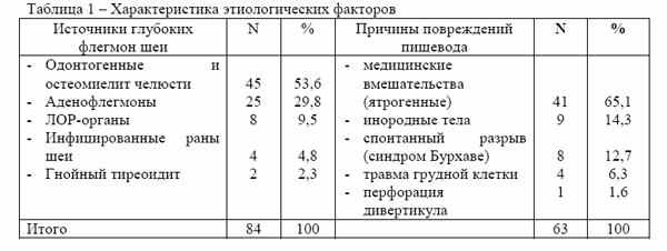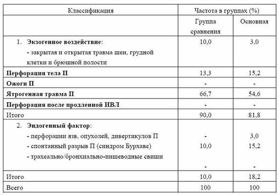 Нами предложена этиологическая классификация перфораций и разрывов пищевода (таблица 2).