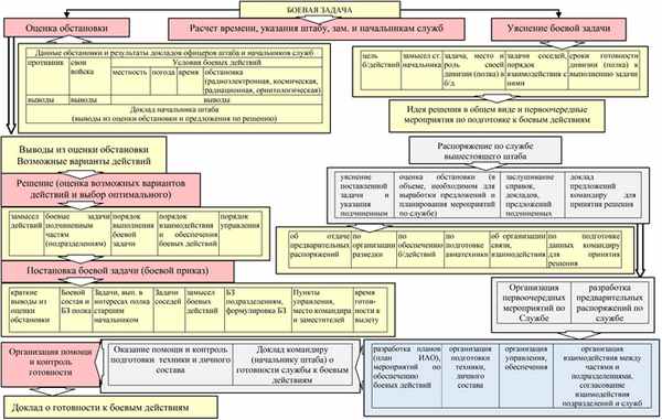 Схематическое изображение содержания работы командира, штаба и служб при подготовке к боевым действиям показано на рис. 3.
