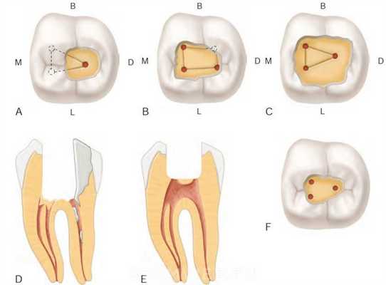 На практике используют обе методики препарирования. При необходимости экстирпации пульпы создают свободный доступ к корневым каналам, при необходимости пульпотомии полость препарируют ограниченно [Goldman H. M et al., 1970; Ingle J. J., Beveridge E. E., 1976].