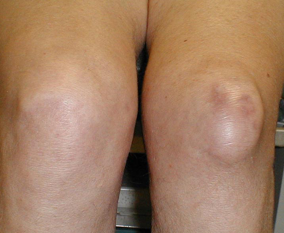 Основными признаками имеющегося и развивающегося препателлярного бурсита могут являться: