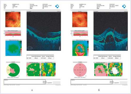 Для уточненной дифференциальной диагностики проведены флюоресцентная ангиография и спектральная оптическая когерентная томография.