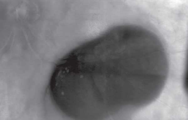 Рис. 4. Инфракрасная сканирующая лазерная офтальмоскопия в ретро-режиме. Изображение округлого объёмного образования