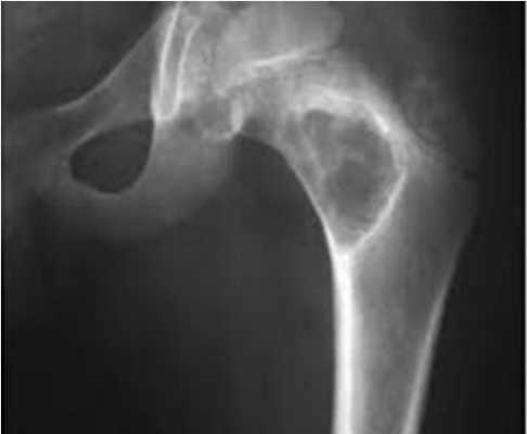 Это пример вторичного остеоартрита тазобедренного сустава, что обусловлено: