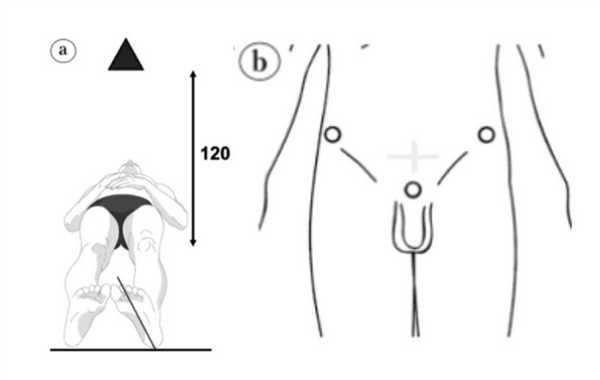 - а — положение исследуемого и расстояние до рентгеновской трубки;