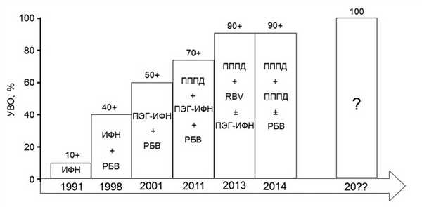 Рис. 1. Эволюция ПВТ ХГС. УВО — устойчивый вирусологический ответ.