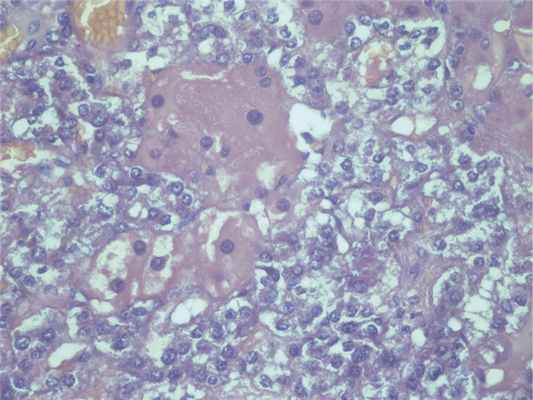 Рис. 2. Смешанное строение опухоли, окрашивание гематоксилином и эозином, х400.