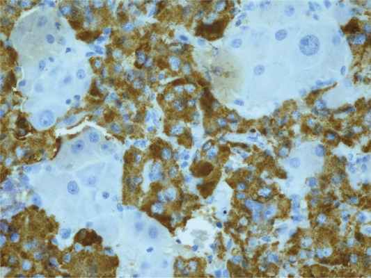 Рис. 3. Иммуногистохимическое исследование с антителами к АКТГ. х300.