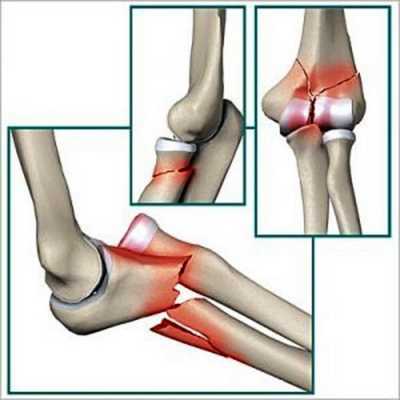 Частая травма локтя — отрыв медиального надмыщелка, сопровождающийся его переломом, из-за запредельной тяги коллатеральных связок. Происходит отсоединение костного отломка, попадающего в суставную полость и полностью блокирующего движения. Попытка согнуть или разогнуть локоть приводит к возникновению сильной, пронизывающей боли. Показана открытая операция с фиксацией костного фрагмента к участку отрыва. Иногда восстановить сочленение возможно консервативным способом, но только при нахождении отломка рядом с местом его отрыва.