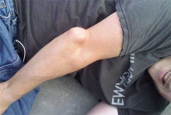 - гематома образуется немного позже. Сначала происходят точечные кровоизлияния из-за разорвавшихся крупных сосудов. Постепенно кровь изливается в подкожную клетчатку и на передней поверхности локтя появляется обширная гематома;
