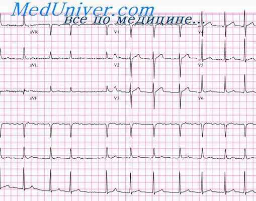 - отсутствие во всех электрокардиографических отведениях зубца Р;
