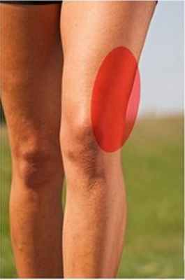Место боли при синдроме подвздошно-большеберцового тракта располагается по наружной стороне коленного сустава чуть выше суставной щели