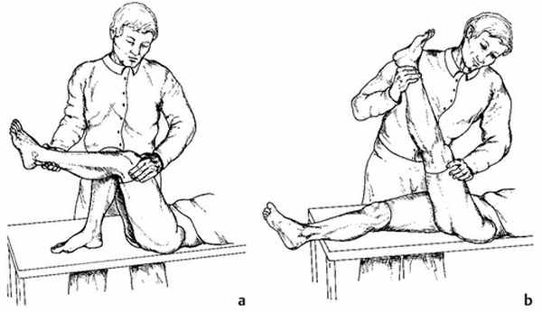 Подтвердить диагноз можно с помощью провокационной пробы Нобеля. Для этого больного кладут на спину и сгибают колено пораженной ноги. Затем, надавливая на наружный надмыщелок, разгибают колено. Пробу считают положительной, если при сгибании коленного сустава на 30—40° возникает боль. Проводят и другие пробы, например просят больного попрыгать на пораженной ноге с согнутым коленом — боль в наружном отделе коленного сустава подтверждает диагноз.