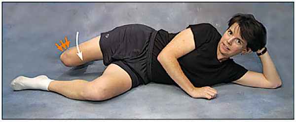 Исходное положение: лёжа на боку, ноги вместе, травмированная нога сверху; нижнюю руку можно положить под голову.