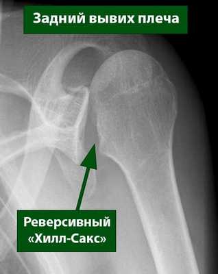При внутренней ротации плеча происходит зацепление переднего дефекта головки плечевой кости и заднего края гленоида, в результате чего происходит вывих.