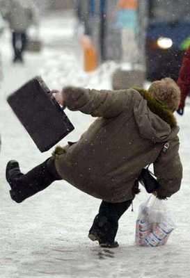 в гололедицу ходить нужно по-особому – как бы немного скользя, словно на маленьких лыжах, наступать на всю подошву;