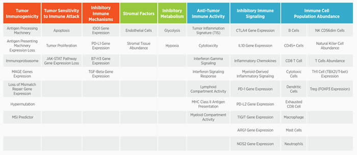 Производитель предлагает широкий перечень уже готовых панелей для различных областей исследования: онкология, онкогематология, нейропатологии, нейровоспаление, иммунология, аутоиммуные заболевания, стволовые клетки, микроРНК и многие другие. Большинство готовых панелей на экспрессию генов в своем составе, кроме генов различных сигнальных путей и сигнатур, отвечающих за определенные процессы, имеют сигнатуры для определения клеточного состава образца. Например, панель nCouner Human Neuroinflamation демонстрирует в процентном соотношении клетки ЦНС: нейроны, астроциты, микроглия, олигодендроциты, эндотелий и периферические иммунные клетки: B-клетки, дендритные клетки, истощённые цитотоксические лимфоциты, макрофаги, T-клетки, CD8+ T клетки, нейтрофилы, тучные клетки, цитотоксические клетки, регуляторные T-клетки, натуральные киллеры CD56dim, натуральные киллеры, CD45+ и T-хелперы 1. Также, эта панель исследует 23 сигнальных пути и процессов, затрагивающих три основные темы нейровоспаления: иммунитет и воспаление, нейробиология и нейропатология, метаболизм и стресс. Кроме сигнатур связанных с процессами, сигнальными путями и типами клеток, некоторые наборы включают специфические сигнатуры такие как PAM50 для определения молекулярного подтипа опухоли молочной железы или TIS (Tumor Inflammation Signature) которая показывает на вовлеченных и активацию иммунных клеток в микроокружение опухоли. Другой пример - панель nCounter IO 360 анализирует более 40 различных сигнатур для исследования вовлеченности иммунного ответа при онкологических заболеваниях