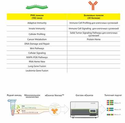 - Единовременное измерение экспрессии сотен генов-мишеней/микроРНК, мишеней ДНК и десятков белков в одной реакции