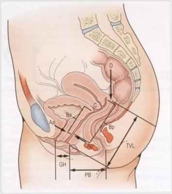 Рис 2. Анатомические ориентиры, используемые для определения степени пролапса тазовых органов