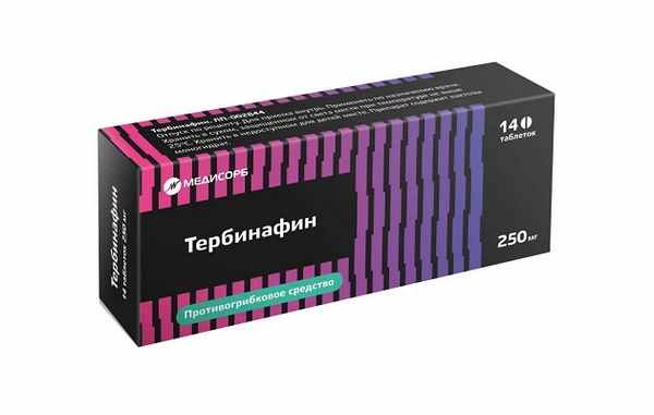 Противогрибковый препарат в таблетках дозировкой 125 и 250 мг назначают для лечения грибковых заболеваний кожи, слизистых, ногтей и волосистой части головы 2 . После приема тербинафин быстро распределяется в организме и накапливается в коже, подкожной клетчатке, ногтевых пластинах и волосяных фолликулах 2 . Средняя продолжительность лечения составляет несколько недель. Выпускается также спрей и крем «Тербинафин» для наружного применения 2 .