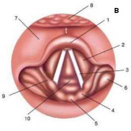 Таким образом, можно рассмотреть черпаловидные хрящи, заднюю стенку трахеи, голосовые связки и т.д.
