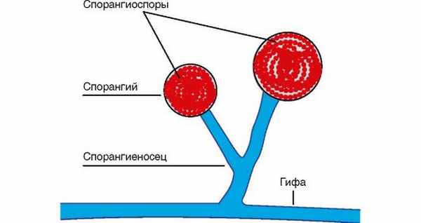 Рис. 2–12. Бесполое размножение у зигомицетов.